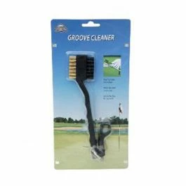 The OnCourse Deluxe Brush with Retractable Cord provides a brass brush for irons, a nylon brush for woods and a molded handle for a firm grip. The retractable cord attaches easily to the golf bag and provides for easy use.