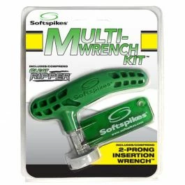 The Softspikes Multi-Wrench Kit has a 2-prong insertion wrench and ergonomic handle with an aggressive design that helps golfers remove even the most stubborn cleats.