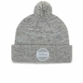 - Acrylic 5-gauge, tricolor knit with single-color cuff and Pom Pom top